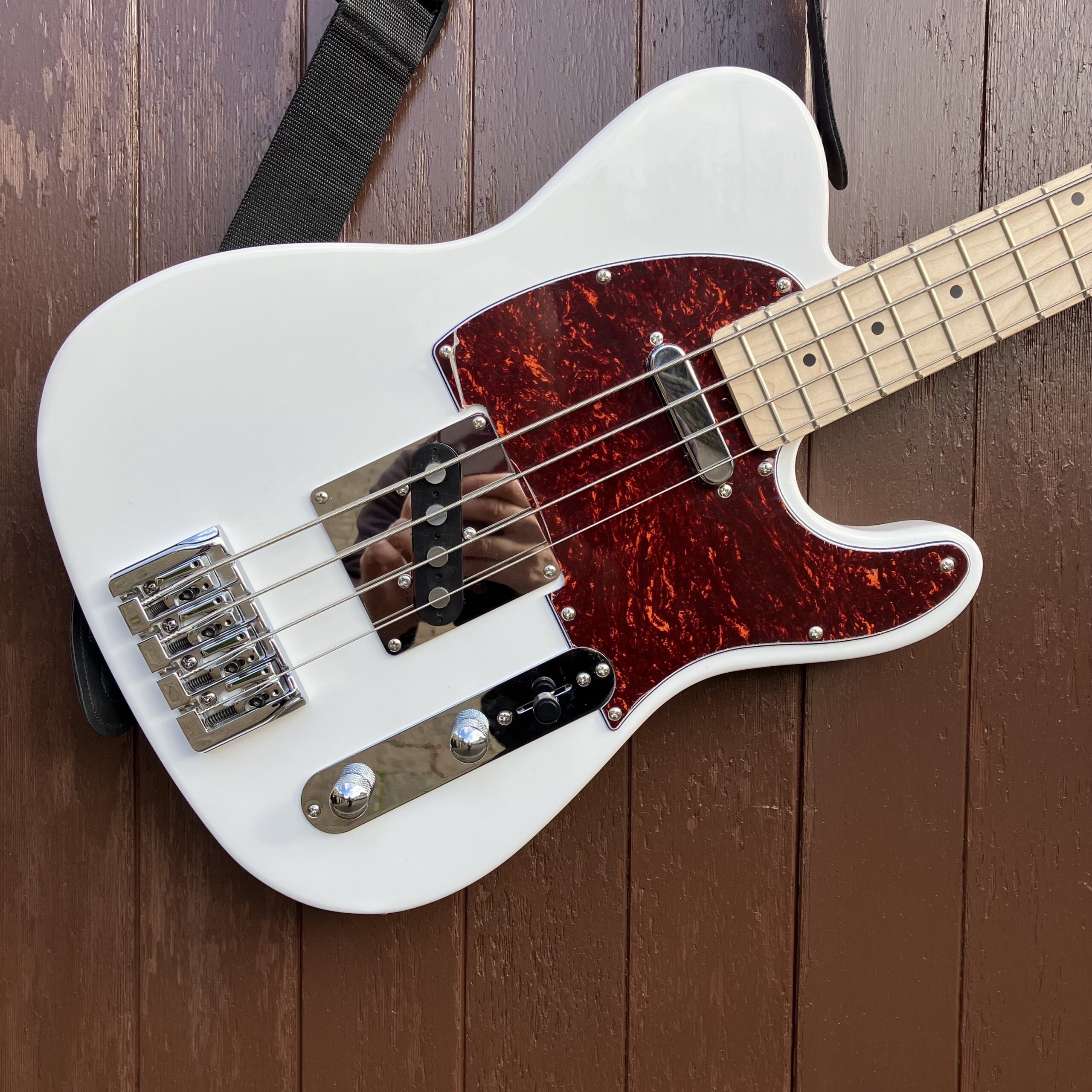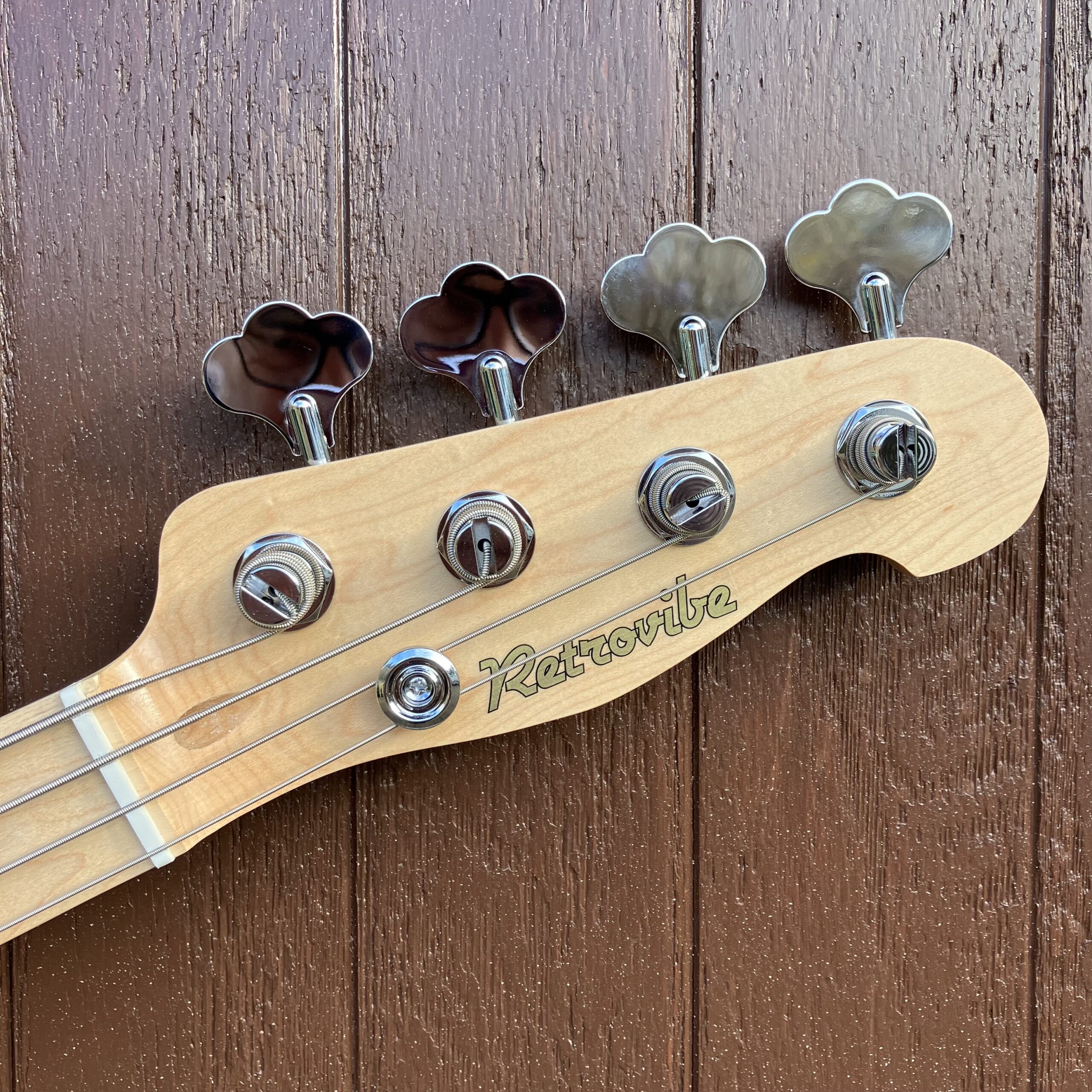 The T32 bass is 32″ scale and based on a Telecaster with custom Retrovibe T-BOSS bridge and neck pickups.
